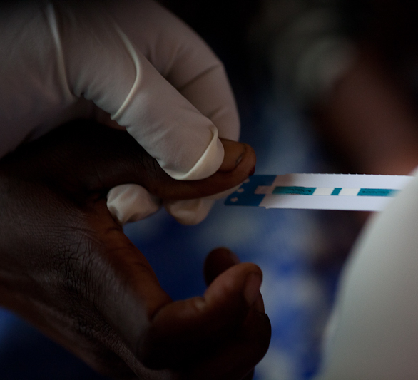 For a long time, Getrude stares at the three plastic test strips on the floor. Two strips, Gertrude’s and Joyce’s, are reactive. Spiwe’s is negative. Gertrude’s eyes remain fixed there, as a second test confirms that she is HIV-positive. The tests are thrown away. She barely looks up.